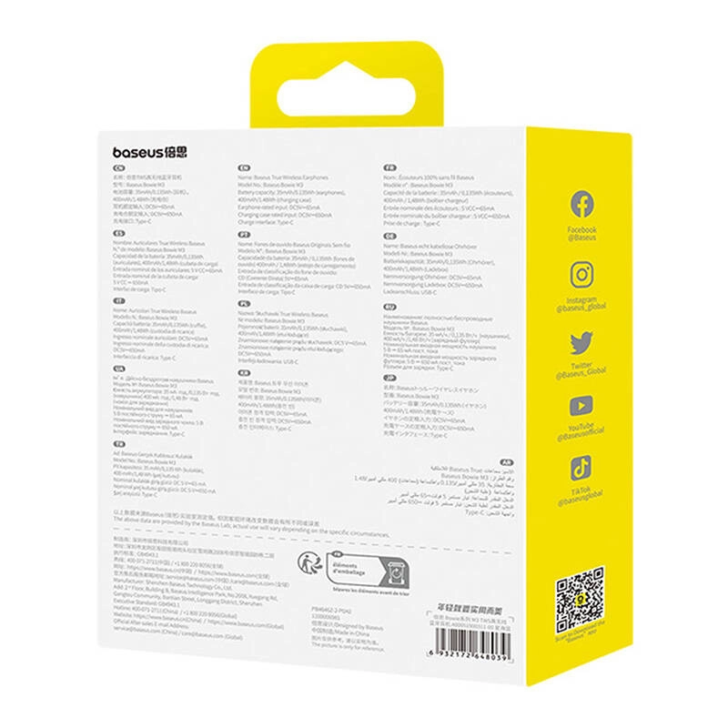 Slušalke Baseus Bowie M3 so odlična izbira za vsakogar, ki želi uživati v najljubši glasbi brez motenj iz okolice. Zahvaljujoč dinamičnemu algoritmu odpravljanja šumov zmanjšajo okoliški hrup do -30 dB. Trije vgrajeni mikrofoni in umetna inteligenca zagotavljajo čist zvok klica in minimalen šum iz okolice.