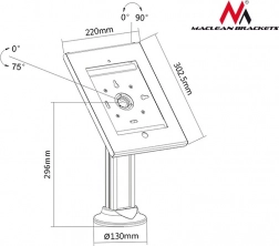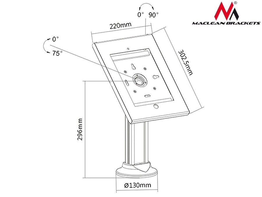 Stojalo – reklamni nosilec za tablico za iPad 2/3/4/Air/Air2 zagotavlja visoko kakovost izdelave in varnost zahvaljujoč jeklenemu podstavku z montažnimi odprtinami. Ponuja možnost namestitve tablice vodoravno ali navpično.