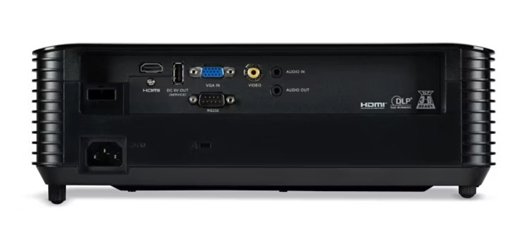 Projektor je opremljen z vsemi potrebnimi vhodi, vključno z 1x HDMI, 1x VGA in zvočnimi priključki, ki zagotavljajo široko združljivost z modernimi napravami.