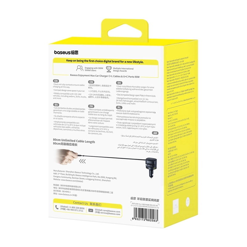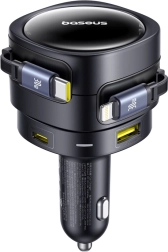 Polnilec za avto Baseus vam omogoča polnjenje do štirih naprav hkrati zaradi dveh vgrajenih kablov in dodatnih dveh vrat. S skupno možjo do 90 W in vgrajenim varnostnim sistemom je zanesljiv in primeren za vsako vozilo.