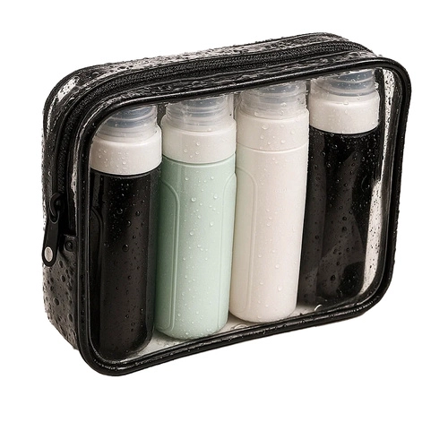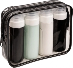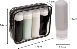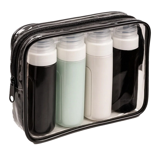 Predstavljamo praktičen potovalni kozmetični komplet znamke Trizand, ki je popoln za vse vaše potovalne potrebe. Gre za komplet štirih silikonskih stekleničk in prozorne vodotesne torbice, ki izpolnjuje standarde TSA/IATA za prevoz tekočin v ročni prtljagi. Brez skrbi zaradi razlitega šampona v kovčku!