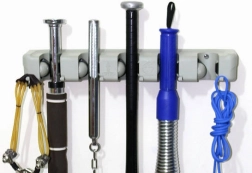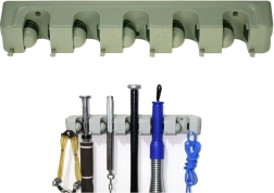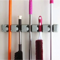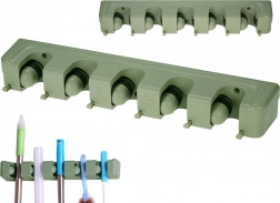 Stenski nosilec za mopa in metle je idealen pomočnik za vsako gospodinjstvo ali garažo. S petimi nastavljivimi režami in šestimi majhnimi kaveljčki ponuja dovolj prostora za shranjevanje krtač, mopov in drugih čistilnih orodij. Izdelan iz trpežne plastike, trdno drži različne premeri palic, zato je primeren za širok nabor gospodinjskih in vrtnarskih potreb.
