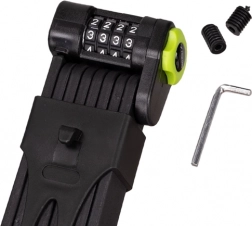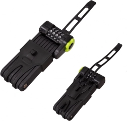 Zložljiv kolesarski ključavnica TRIZAND je zasnovana tako, da nudi neprekosljivo zaščito zaradi svojih močnih jeklenih segmentov. Ta štirimestna številčna ključavnica ponuja več kot 10.000 kombinacij, kar zagotavlja, da lahko svoje kolo zavarujete brez skrbi za izgubo ključev. Zložljiva konstrukcija omogoča enostavno prilagajanje različnim delom okvirja vašega kolesa ali stojala. Lahko se zanesete na njeno trdnost in prilagodljivost tako v mestu kot v naravi.