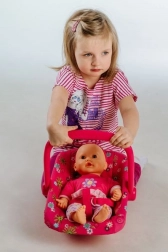 Mehko oblazinjenje sedeža zagotavlja udobno namestitev punčke med igro.