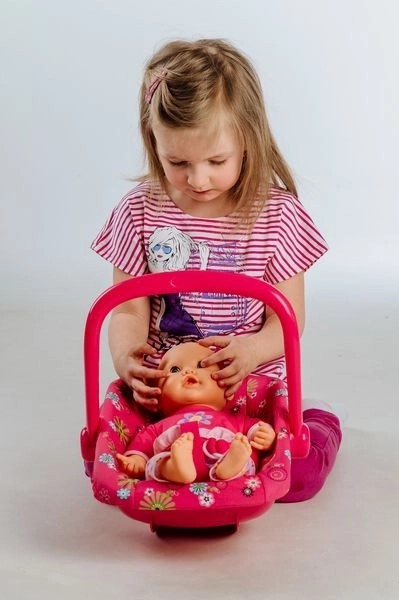 Ustvarjeno za neskončne ure zabave, ta nosilni trak za punčke združuje praktičnost in varnost. Otroci lahko udobno prenašajo svoje najljubše punčke zahvaljujoč trdnemu plastičnemu ročaju in mehko, oblazinjenemu sedežu.