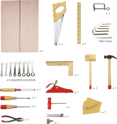 Lesen kovček z orodjem vsebuje vse, kar mladi mojster potrebuje. Vključuje izvijače, žage, ključe, kladiva in številna druga orodja. Izdelan je iz kakovostnih materialov in izpolnjuje evropske varnostne standarde.