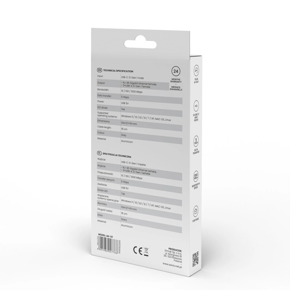 Hub Savio je idealen partner za prenosnike in namizne računalnike s pomanjkanjem USB-A priključkov. Priključite do treh dodatnih perifernih naprav, kot so zunanji diski, tipkovnice ali miške, in uživajte v preprostem ter hitrem povezovanju.