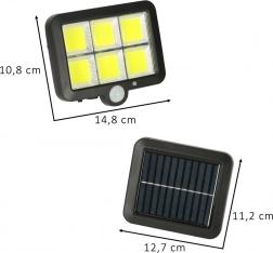 Izkoristite prednosti, ki jih ponuja solarna svetilka s senzorjem gibanja in mraka, saj nudi okolju prijazno in varčno rešitev za zunanjo osvetlitev. Opremljena je s 120 LED diodami, ki zagotavljajo močno svetlobo. Sončni panel učinkovito polni baterijo, kar omogoča delovanje skozi celo noč.