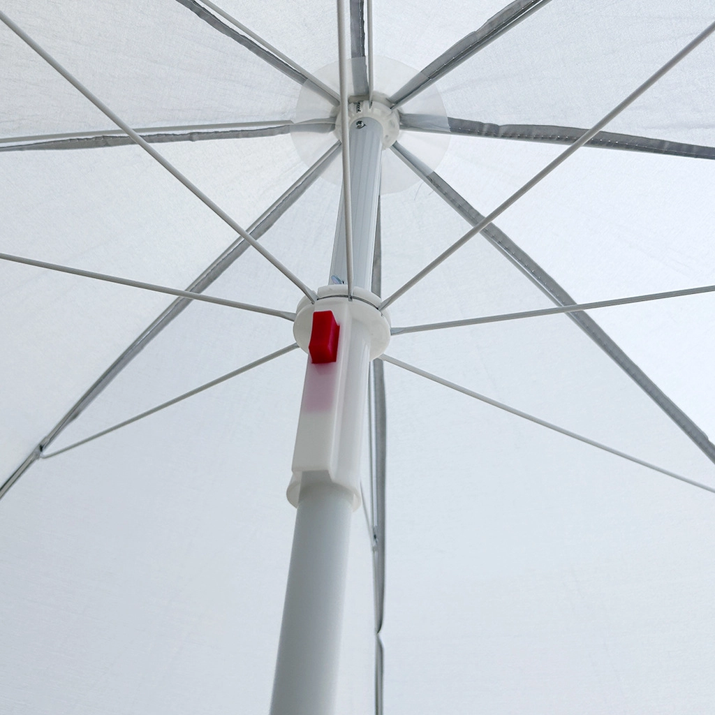Ta eleganten siv senčnik je zasnovan za udoben počitek celotne družine. Notranja srebrna plast učinkovito odbija UV-sevanje in zmanjšuje toplotno obremenitev, zato pod platnom ostaja prijeten hlad tudi v vročih dneh. Zahvaljujoč višinskemu razponu 140–180 cm si senco zlahka prilagodite položaju sonca.