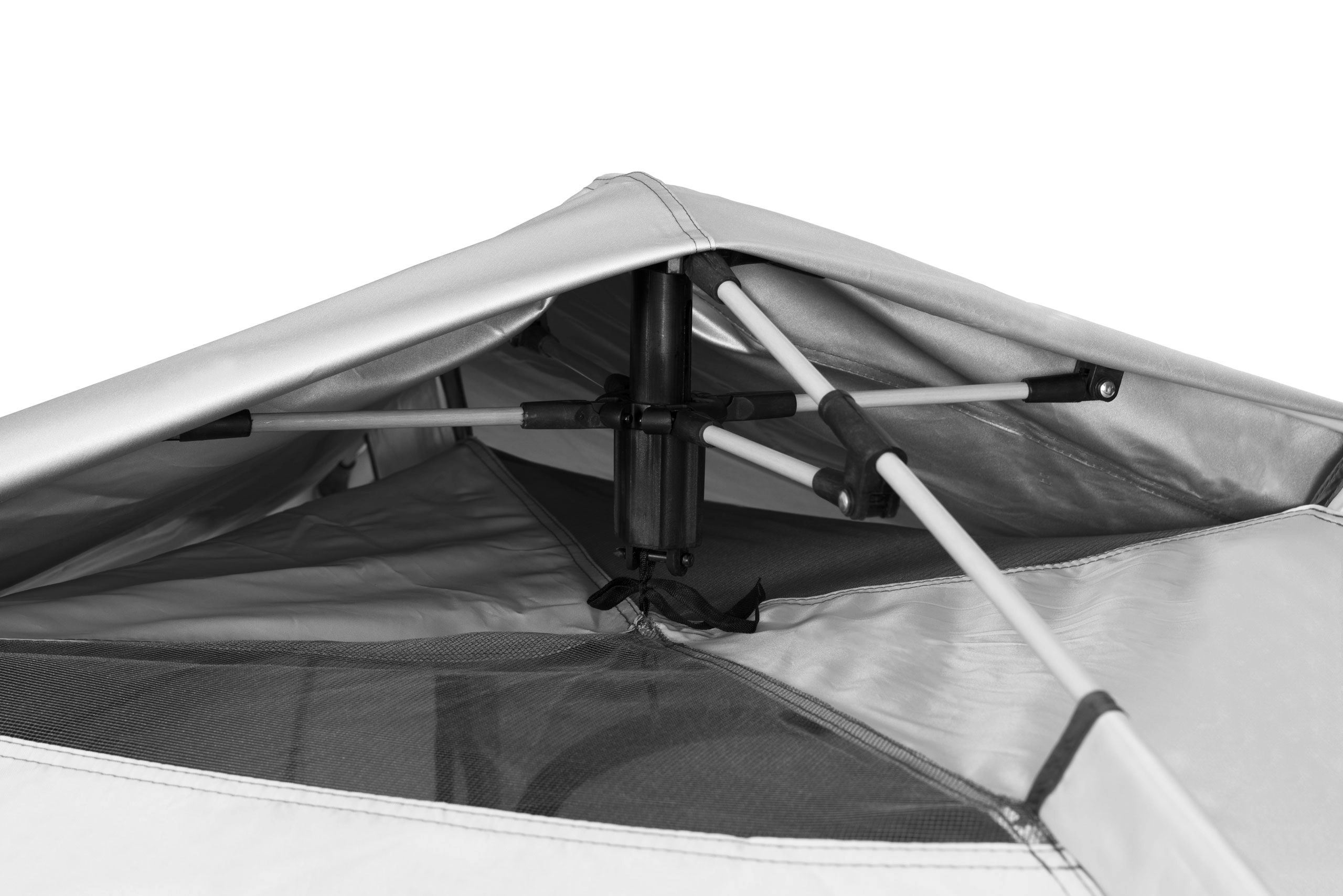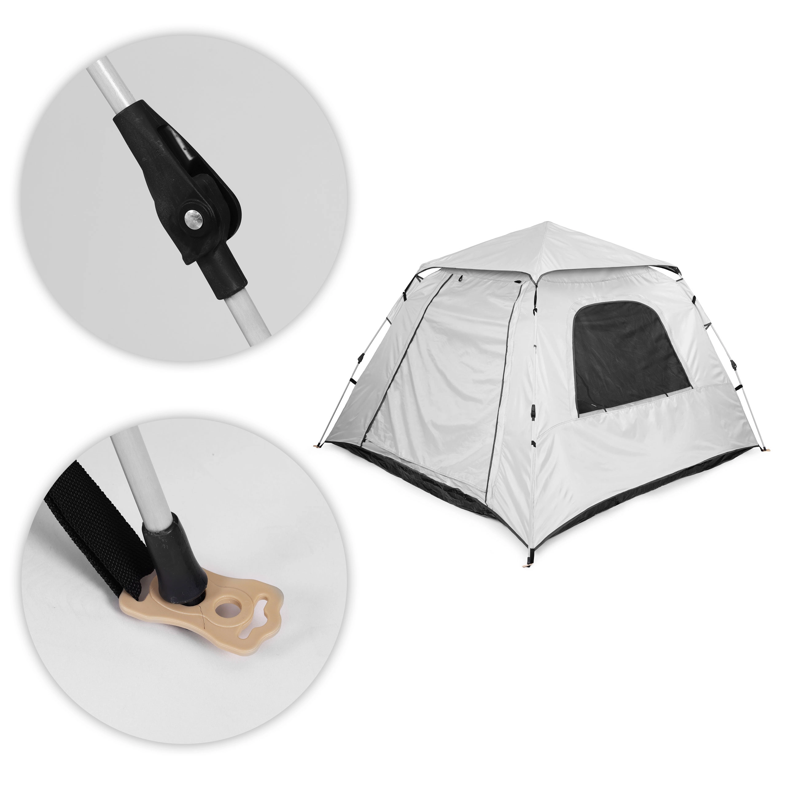 Šotor je opremljen z avtomatskim sistemom nastavitve, ki omogoča hitro in enostavno montažo brez uporabe orodja. Zaradi uporabe jekla in steklenih vlaken je konstrukcija šotora čvrsta in stabilna tudi na neravnih terenih.