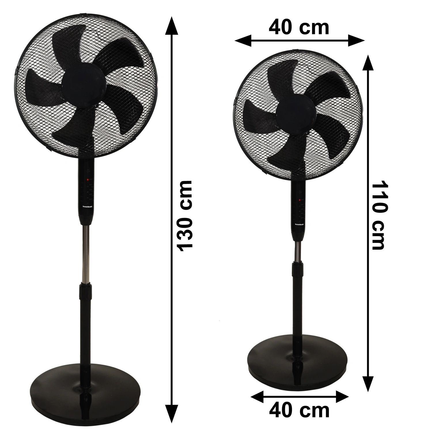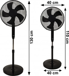Dodatna prednost je nastavljiva višina od 110 do 130 cm, kar omogoča optimalno prilagoditev ventilatorja vašim potrebam. Z nastavljivim naklonom in oscilacijo dosežete popoln nadzor nad smerjo pretoka zraka in stopnjo hlajenja.