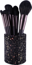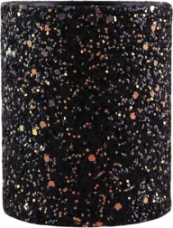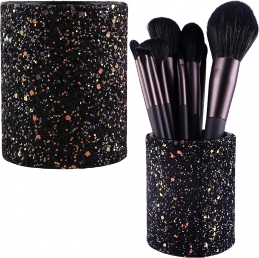 Izdelan iz trpežnega materiala in prekrit z bleščečimi bleščicami, doda pridih elegance ter praktičnosti. Kozarec je primeren ne le za čopiče za ličenje, temveč tudi za barvice za oči, maskare, kontur svinčnike in druge manjše kozmetične dodatke. Zaradi čvrste konstrukcije in odpornosti na vlago je idealen tudi za uporabo v kopalnici.
