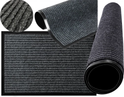 Ta siva gumirana preproga je zasnovana za vsakodnevno uporabo v stanovanjih, pisarnah in poslovnih prostorih. Protizdrsna guma zagotavlja stabilnost na različnih vrstah tal, medtem ko trpežna sintetična vlakna z rebrasto strukturo zanesljivo odstranijo pesek, prah in vlago z obutve.
