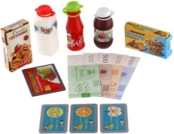 Igra razvija računanje, fino motoriko in komunikacijske veščine. V paketu so priložene makete živil, bankovcev in kovancev, zato se lahko mali prodajalci in kupci igrajo takoj po odprtju. Mere pakiranja: 48 × 25 × 19 cm. Napajanje: 2× AA (baterije niso priložene).