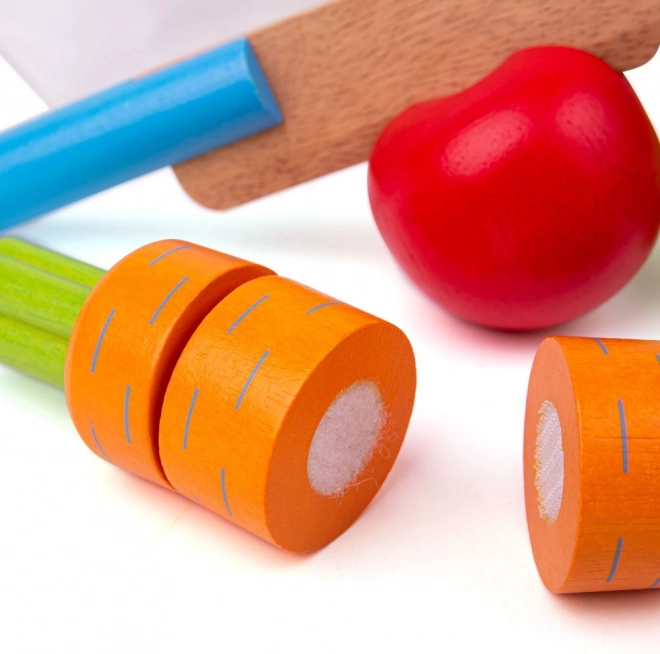 Segmentirana zelenjava se pri “rezanju” prijetno loči in znova spoji – vadi motoriko in uči kuharskih spretnosti na varen način.