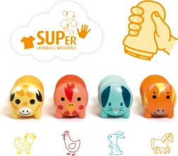 Odkrijte ustvarjalno zabavo za najmlajše z žigi DJECO. Set vključuje 4 samočrnilne žige z živalmi s kmetije – kravico, kokoš, zajčka in konja. Zaradi enostavnega oprijema in vgrajene barve so idealni za prve ustvarjalne poskuse. Preprosta uporaba, živahne barve in varna zasnova za otroke od 18 mesecev dalje.
