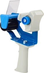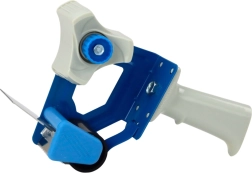 Model je opremljen z napenjalnim mehanizmom, ki preprečuje zapletanje traku in zagotavlja enakomerno vodenje, ter z vzmetnim pritiskom, ki natančno pritisne trak na površino škatle. Dodatna prednost je ergonomski, profiliran plastični ročaj, ki zagotavlja stabilen oprijem in udobje tudi pri daljši uporabi.