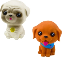 Vsaka figurica je narejena iz mehke, varne gume in ima lepo oblikovan videz. Realistične podrobnosti, sladki obrazki in velike oči naredijo te kužke prikupne na prvi pogled. Ob stisku oddajajo značilen pisk, ki spominja na zvoke pravih mladičkov.