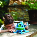 Lahek in trpežen helikopter znamke Green Toys za neskončno domišljijsko igro doma, v peskovniku in ob vodi. Izdelan iz reciklirane plastike iz plastenk za mleko, brez PVC, BPA in ftalatov. Dve vrteči se elisi, stabilne pristajalne smuči in ljubka figurica medvedka pilota zagotavljajo ure varne zabave.