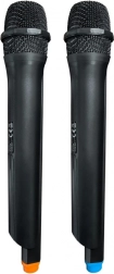 Priložen je tudi en brezžični mikrofon, idealen za karaoke, z avtomatskim povezovanjem z zvočnikom. Priporoča se uporaba funkcije »mikrofonska prioriteta«, ki med petjem utiša glasbo za boljšo izkušnjo. Možnosti povezave vključujejo tudi 6,3 mm vhod za kitaro in AUX priključek za druge avdio naprave.