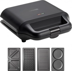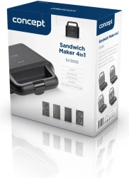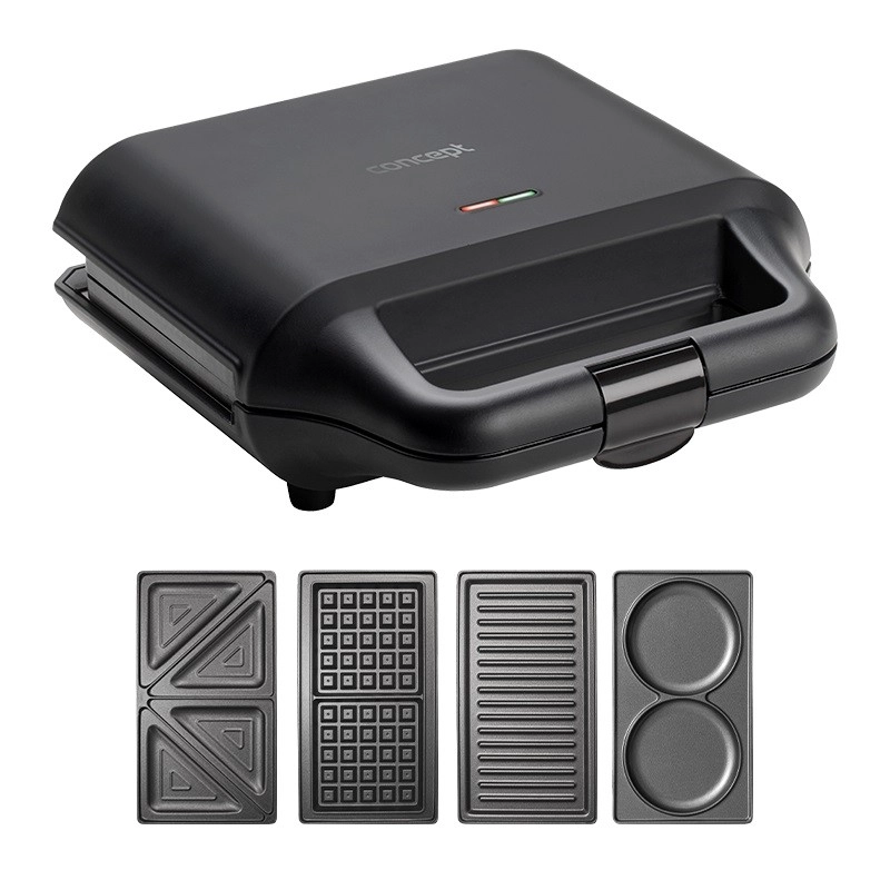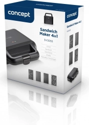 Opekač sendvičev 4v1 v elegantni črni izvedbi znamke Concept je praktičen pomočnik za hitro pripravo jedi. Z njim lahko pripravite: