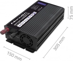 Polnilnik je opremljen s stikalom DIP za spremembo nastavitev polnjenja in omogoča nastavitev 7 različnih kombinacij, ki ustrezajo tipu baterije. Robustno aluminijasto ohišje je odporno proti koroziji, zmogljivo aktivno hlajenje pa se samodejno vklopi med polnjenjem.