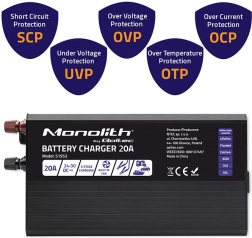 Polnilnik Monolith uporablja inteligentno tristopenjsko polnjenje, ki zagotavlja popolno in enakomerno napolnjenost baterij z zaščito pred prenapolnjevanjem.