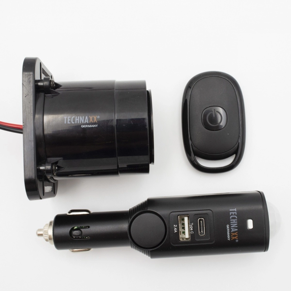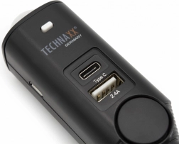 Dodatno je opremljen s IR daljinskim upravljalnikom z dosegom do 10 metrov. Vgrajena USB priključka omogočata priročno polnjenje naprav z različnimi izhodnimi močmi: USB‑C z izhodom 5V/3,0A in klasični USB priključek s 5V/2,4A. Aktivacija na podlagi zaznavanja gibanja preko PIR senzorja omogoča samodejni zagon alarma.