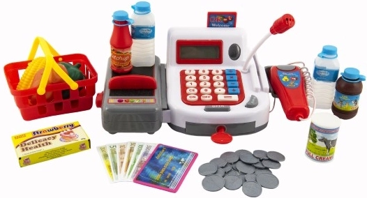 - Dodatki v kompletu: vse potrebno za igro trgovine.