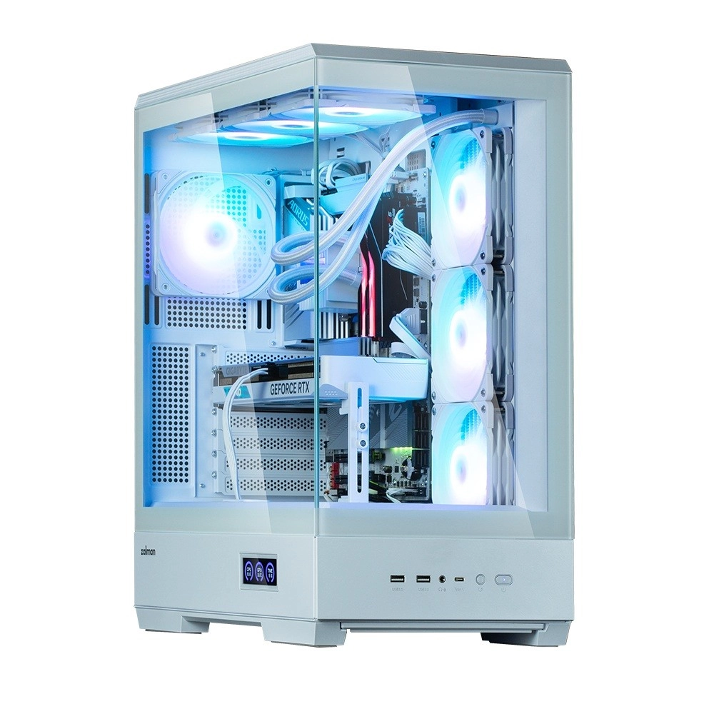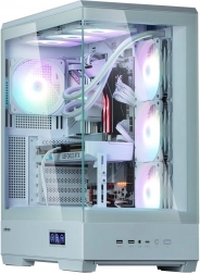 Odkrijte razširjeno belo PC ohišje, ki prinaša moderen in čist dizajn na vašo mizo. Opremljeno z dvema brezokvirnima paneloma iz kaljenega stekla omogoča edinstven pogled na sestavo.