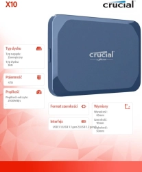 Crucial X10 je zmogljiv in zanesljiv zunanji SSD za shranjevanje in delo z velikimi datotekami – od fotografij in videov do iger in varnostnih kopij. Zahvaljujoč hitrosti branja do 2100 MB/s lahko projekte urejate neposredno z diska in pospešite svoj potek dela. Mat modro ohišje je elegantno in hkrati odlično sede v roko.