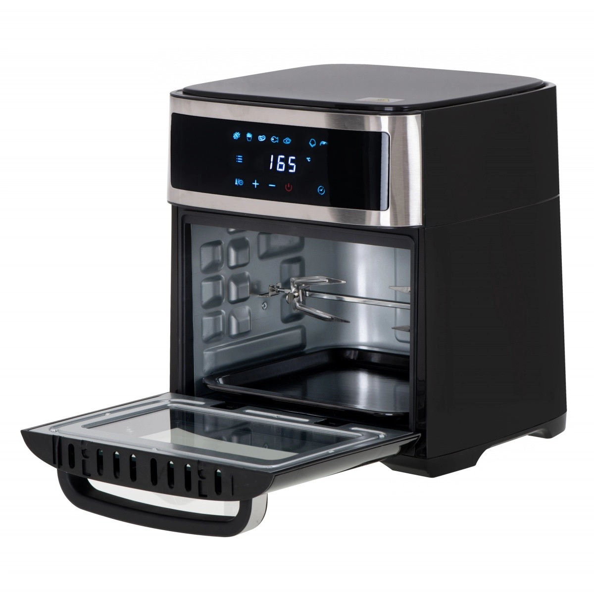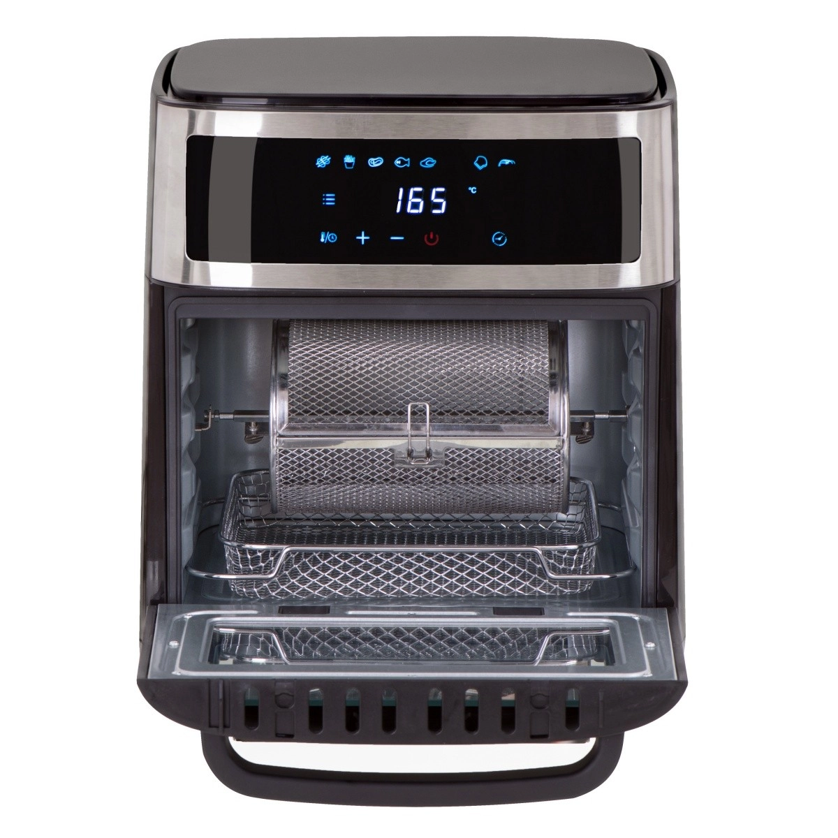 Cvrtnik ima vrtljiv koš za preprosto cvrtje manjših živil, kot so pomfrit ali kozice. Kapaciteta 13 litrov je idealna za pripravo obrokov za vso družino. Upravljanje olajšata pregleden bel LED-zaslon in na dotik občutljiv panel z možnostjo zakasnjenega zagona od 1 do 720 minut.