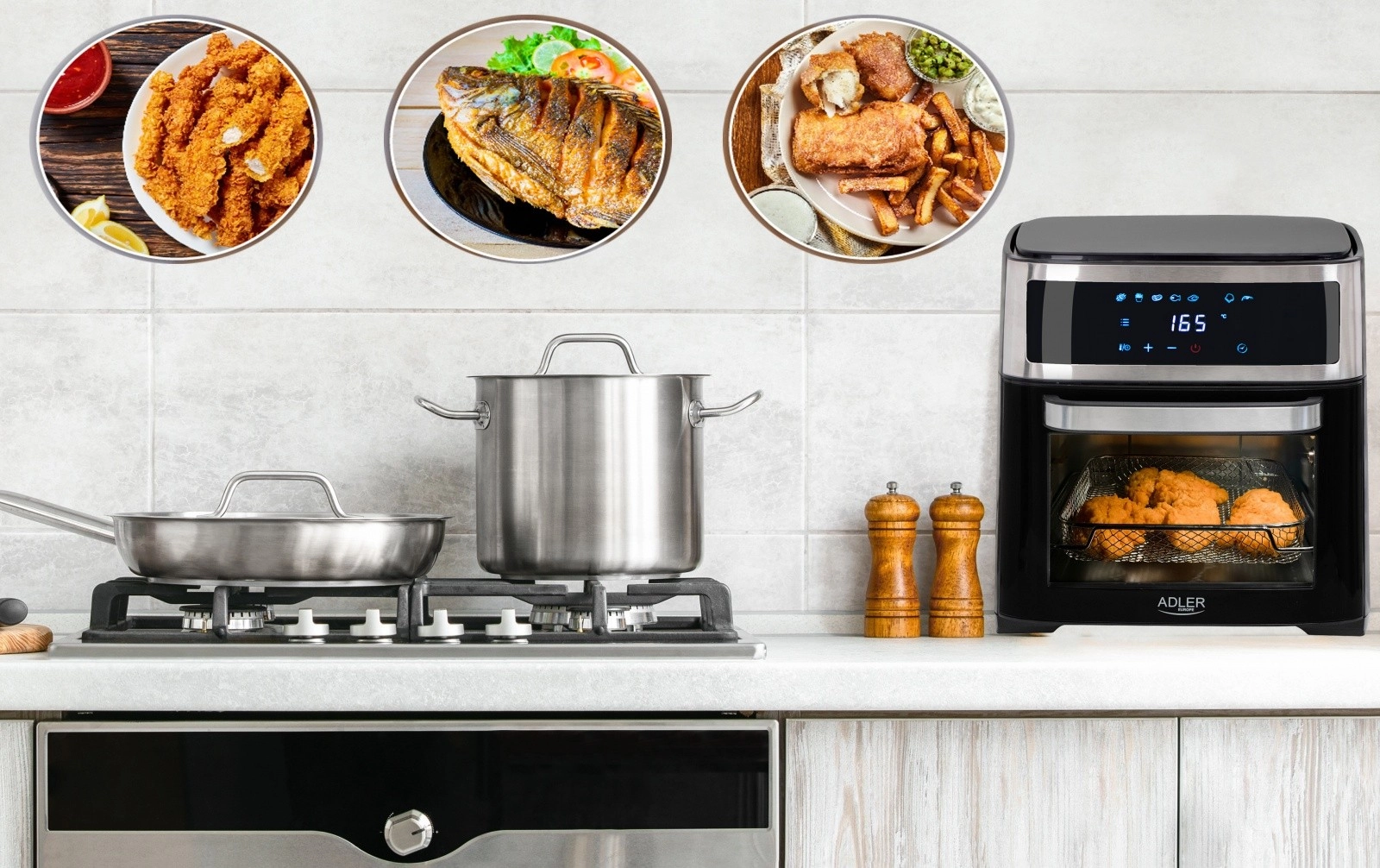 Kuhanje brez olja s konvekcijsko tehnologijo za zdrave in okusne jedi.