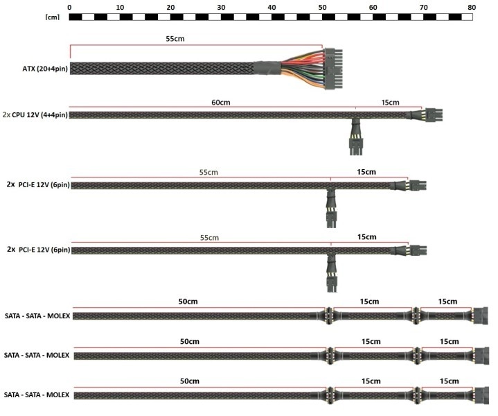 Vgrajen 12 cm ventilator s hidravličnimi ležaji zagotavlja dolgo življenjsko dobo in tiho delovanje. Ohišje je opremljeno z nemodularnimi ploskimi kabli FLAT BLACK za enostavno namestitev.