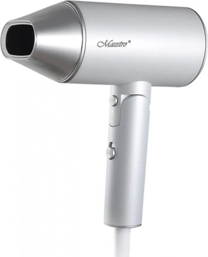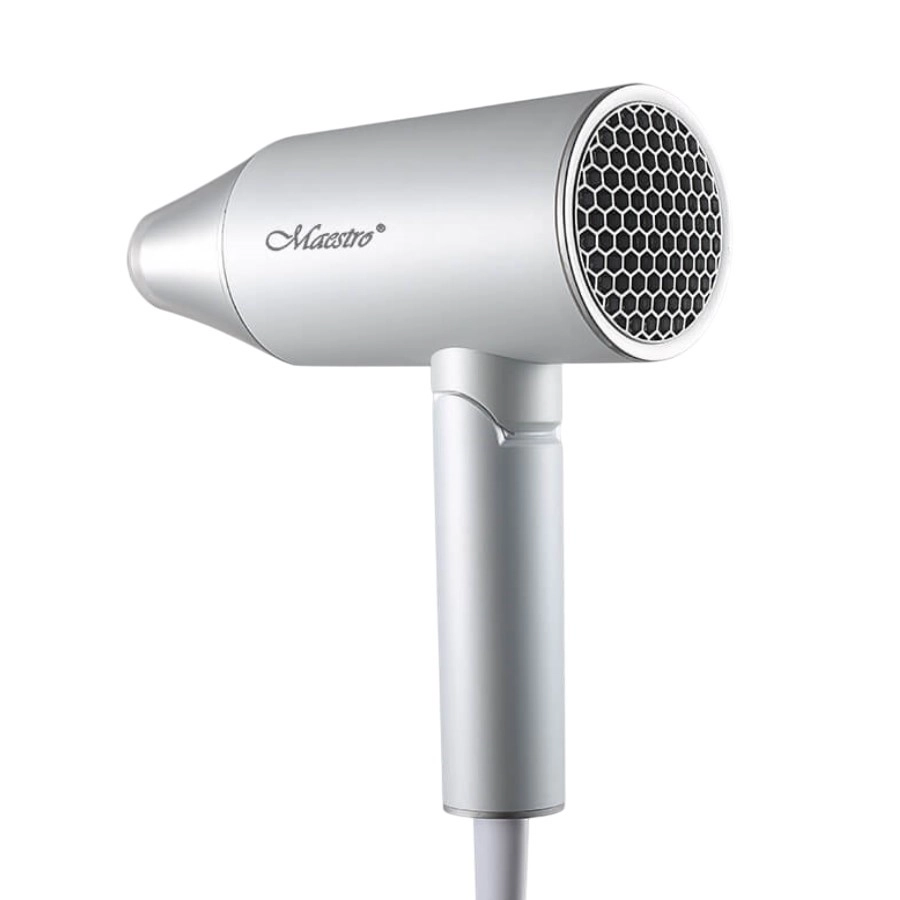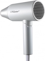 Potovalni sušilnik Maestro z močjo 2100 W in DC-motorjem zagotavlja visoko učinkovitost in tiho delovanje. Opremljen je s koncentratorjem z dvojno steno za natančno oblikovanje pričeske ter zložljivim ročajem za enostavno shranjevanje in prenašanje. Dve stopnji hitrosti pretoka zraka ter funkcija hladnega zraka omogočata prilagoditev nastavitev vašim potrebam. Odstranljiv pokrov filtra olajša vzdrževanje in čiščenje. Dolg, 1,75‑metrni napajalni kabel ponuja veliko svobode gibanja pri sušenju. Dimenzije sušilnika so 24 × 17 × 7,5 cm, kar ga naredi za praktično in funkcionalno opremo za potovanja.