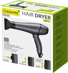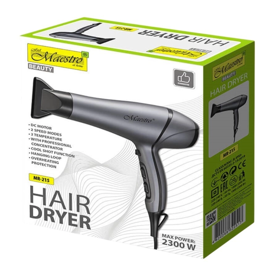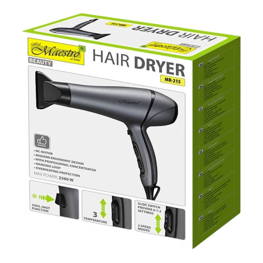 Sušilnik je opremljen z vzdržljivim DC-motorjem, ki zagotavlja dolgo življenjsko dobo in stabilno delovanje. Priložen je koncentrator, ki omogoča natančno usmerjanje zračnega toka in olajša precizne pričeske.