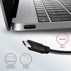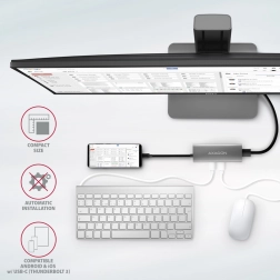 Elegantno in tanko aluminijasto ohišje ne le odlično izgleda, temveč zagotavlja tudi mehansko odpornost in pasivno hlajenje. Teksturirana površina ne pušča prstnih odtisov. Idealen dodatek za prenosnike brez USB‑A vrat in video izhoda, ki omogoča preprosto priključitev perifernih naprav zahvaljujoč funkcijama Plug and Play in Hot Plug.
