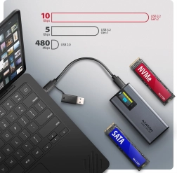 Ohišje podpira hitrost prenosa do 10 Gb/s prek USB 3.2 Gen 2. Poleg tega je združljivo s funkcijami UASP in TRIM ter omogoča branje S.M.A.R.T. informacij. Odpiranje brez vijakov poenostavi montažo M.2 SSD-jev. Ohišje omogoča namestitev diskov dolžin 42, 60 in 80 mm ter podpira enostranske in obojestranske diske.