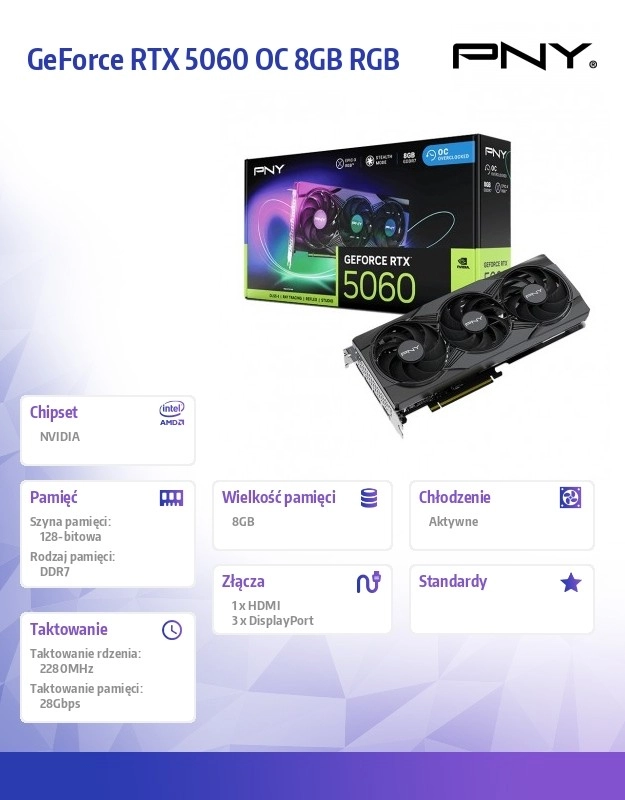 Grafična kartica PNY GeForce RTX 5060 vas bo navdušila z izboljšano arhitekturo NVIDIA Blackwell, ki prinaša brezprecedenčno raven zmogljivosti in učinkovitosti. Ta kartica je idealna za zahtevne igre z visokim številom sličic na sekundo.
