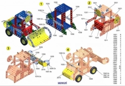Sestavljanka vsebuje priro0dnik, ki vas korak za korakom vodi skozi izdelavo 30 modelov, kot so tra0dna 7eaga, 7eerjav, tovornjak ali vagon. Na uvodnih straneh boste na61li osnovne nasvete glede spajanja delov, uporabe kontramatic in drugih tehnik potrebnih za modeliranje.