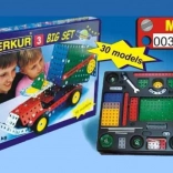 Predstavljamo sestavljanko MERKUR 3, ki je idealna za male in7eenirje in njihove star61e. Ta klasi0dna enoslojna sestavljanka vklju0duje 273 kosov vklju0dno s trakovi, loki, kotniki, kolesi in pnevmatikami. V paketu ne manjka niti vijakov in matic, ki jih potrebujete za sestavljanje 61irokega spektra modelov.