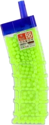 Zaradi kompaktnih mer se dozator zlahka prilega v nahrbtnik ali žep, tako da imajo otroci kroglice vedno pri roki. Gladka površina in enotna velikost podpirata nemoteno podajanje v združljivih igračah. Primerno za otroške pištole na kroglice in druge igrače, ki uporabljajo plastične BB kroglice s premerom približno 6 mm.
