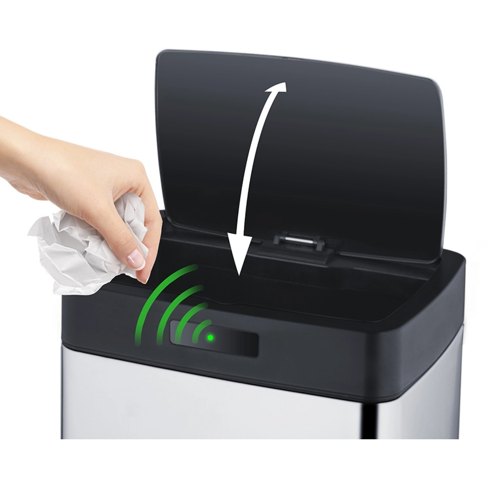 Brezstični nerjavni koš za odpadke ponuja preprosto upravljanje in eleganten dizajn, izdelan je iz visokokakovostnih materialov. Opremljen je s fotoelektrično tehnologijo za samodejno in higiensko odpiranje brez dotika.