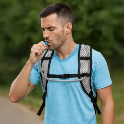 Več kot le voda – poleg rezervoarja nahrbtnik sprejme telefon, ploščice, ključe in lahko jakno – idealen za kolo, tek, treking.