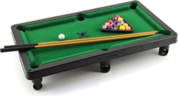 Uživajte v priljubljeni igri kjerkoli z zahvaljujoč kompaktnemu namiznemu biljardu s površino približno 48 × 35 cm. Lahka konstrukcija, zeleno platno in stabilne nogice zagotavljajo udobno igro na jedilni, konferenčni ali pisalni mizi. Odlična izbira za otroke od 4 let naprej in odrasle, ki želijo vaditi natančnost in potrpežljivost.