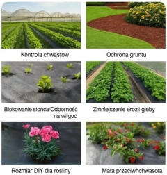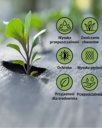 Ta kakovostna agrotextilija je idealna za zaščito rastlin in zemlje pred plevelom, brez potrebe po uporabi kemikalij. Zaradi svojih lastnosti zadržuje vlago v zemlji in izboljšuje njeno toplotno regulacijo, kar pospešuje rast vaših rastlin.