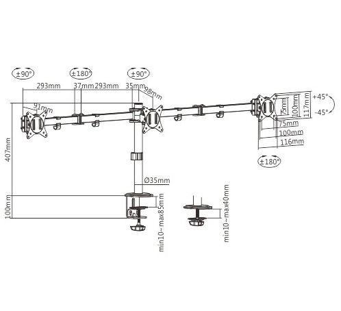 - Nosilec je mogoče vrteti, podaljševati, zložiti in nagibati, kar omogoča maksimalno prilagodljivost na vaši delovni postaji.