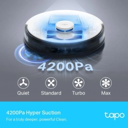 Tapo RV30 je opremljen s štirimi načini sesanja, ki se prilagajajo različnim površinam in nečistočam. S sesalno močjo do 4200 Pa temeljito očisti skrite nečistoče in vlakna v preprogah.