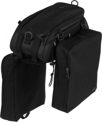 Izdelane iz vodotesnega poliestra, te torbe kljubujejo dežju in vlagi ter ščitijo vaše stvari v vsakem vremenu. Sestavljene so iz ene osrednje torbe in dveh stranskih torbic, ki jih lahko preprosto odstranite in nosite kot torbo čez ramo.