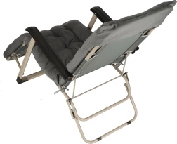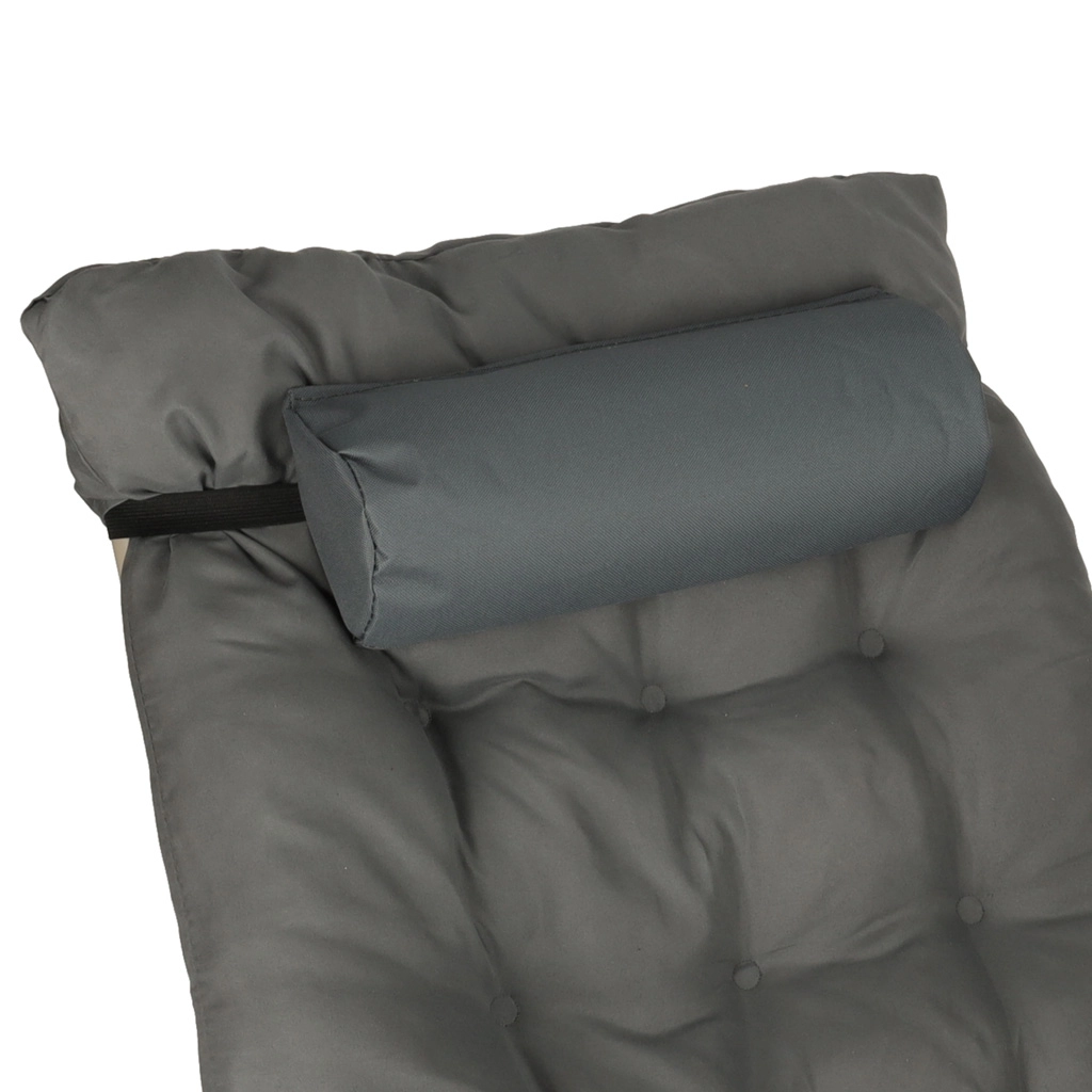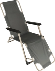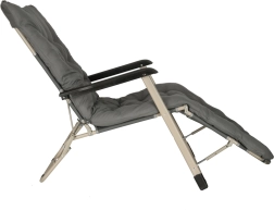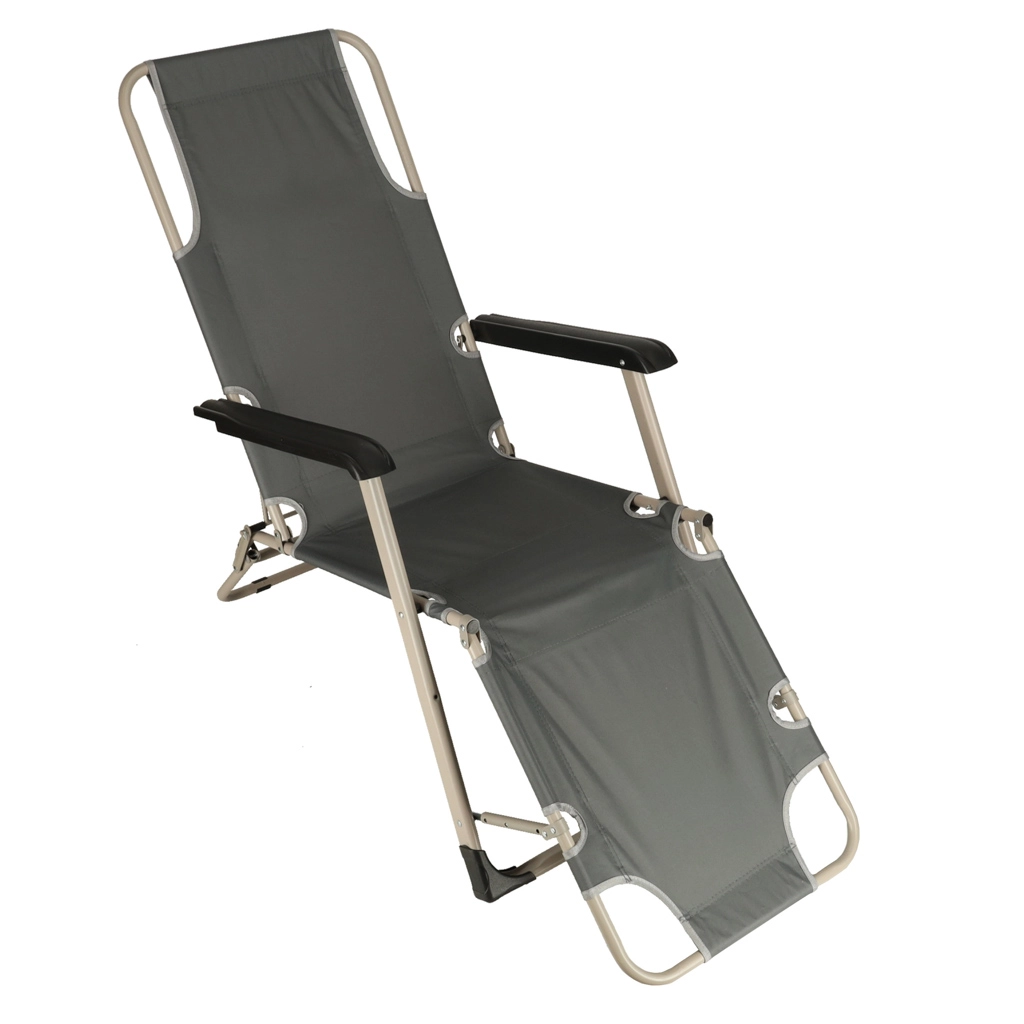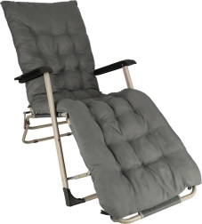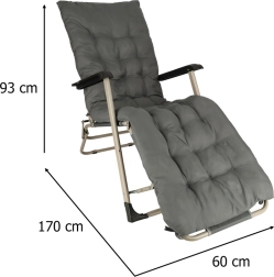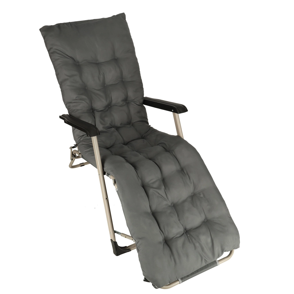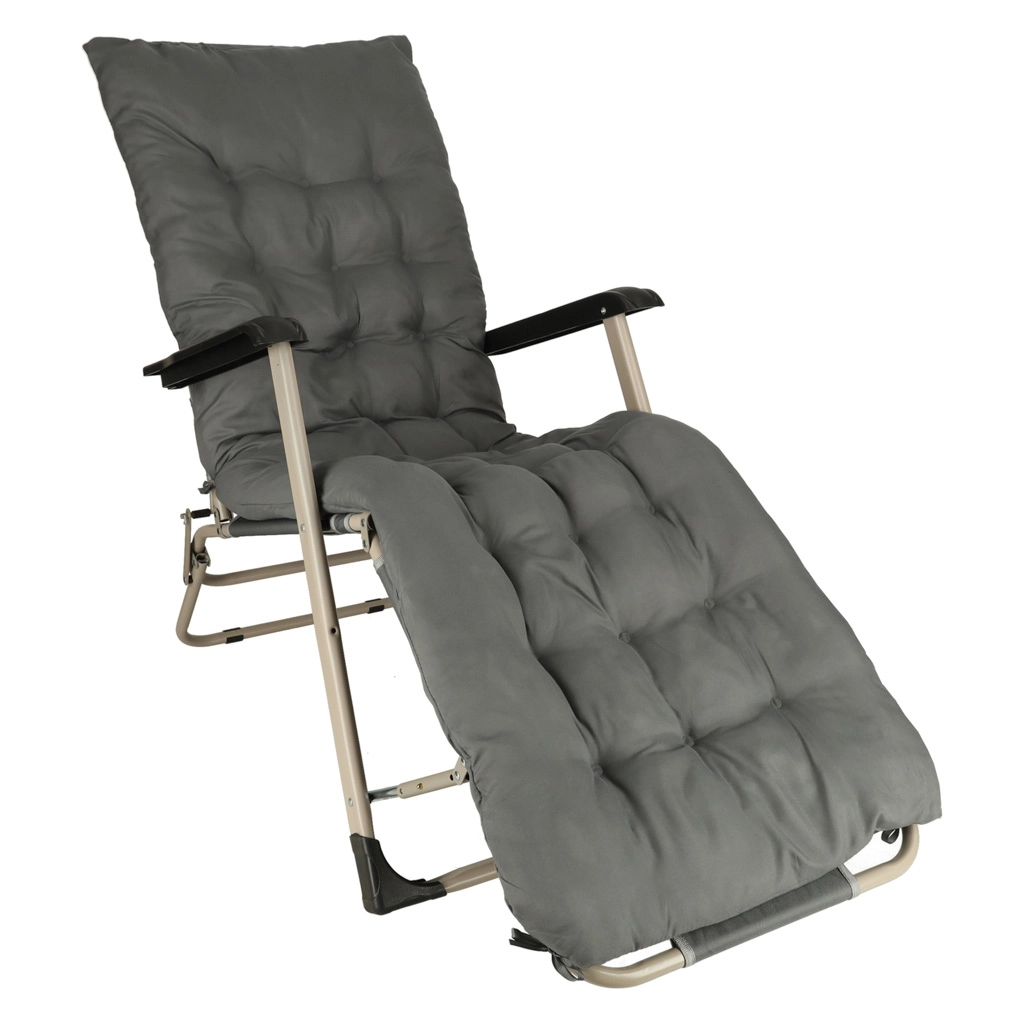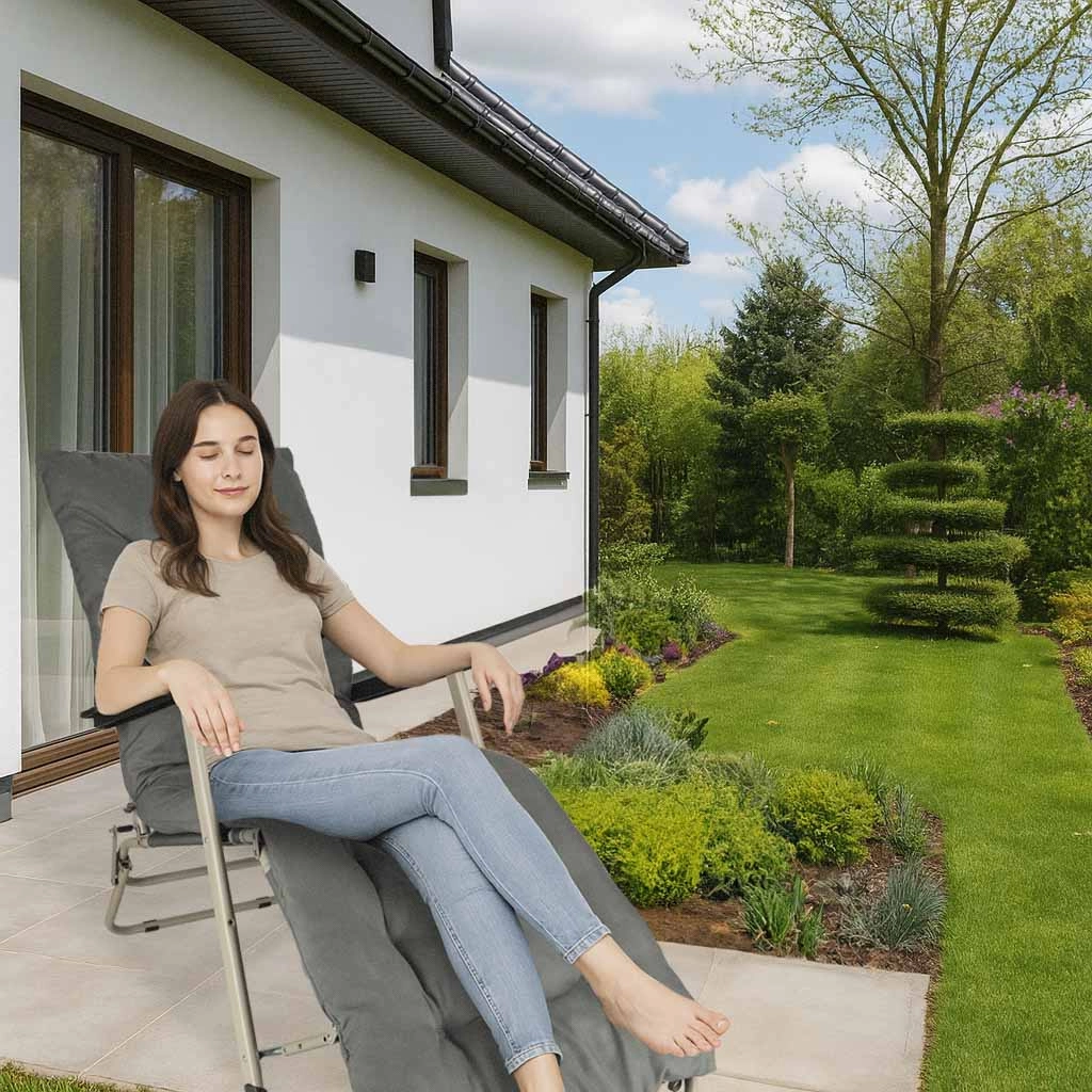 Siv zložljiv vrtni ležalnik z udobno blazino je idealna izbira za sprostitev na vrtu ali terasi. Zelo vzdržljiva konstrukcija in zložljiv dizajn zagotavljata enostavno prenašanje in shranjevanje.